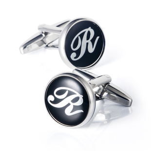 衬衫 钉法式 袖 口扣 送礼盒 字母袖 包邮 扣自由搭配简约圆形黑色珐琅袖