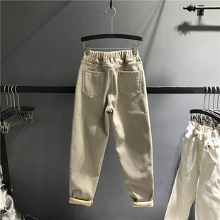 小脚垮裤 欧货2025冬季 女宽松哈伦裤 松紧腰加绒加厚老爹牛仔裤 新款
