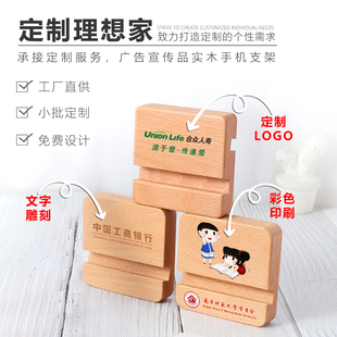 实木制手机支架定制logo桌面手机底座平板iPad支撑架木质创意刻字