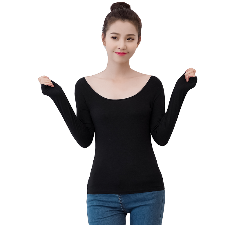 纯色百搭圆领长袖 打底衫 修身 新款 上衣 女莫代尔t恤紧身2020秋装