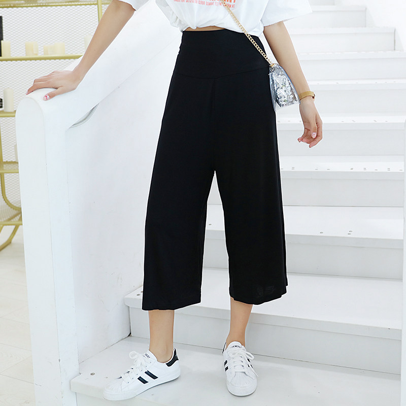 宽腿运动裤 休闲女高腰七分直筒显瘦薄款 宽松大码 春夏莫代尔阔腿裤