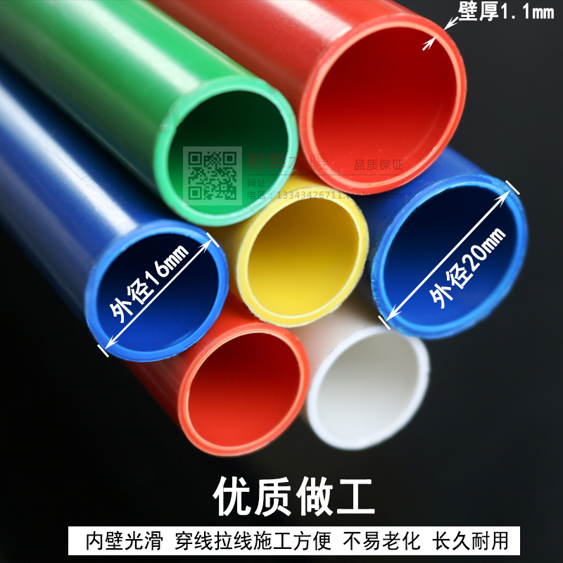 PVC16电工套管3分4分20mm可冷弯红蓝黄绿色家装 阻燃pvc暗穿电线管