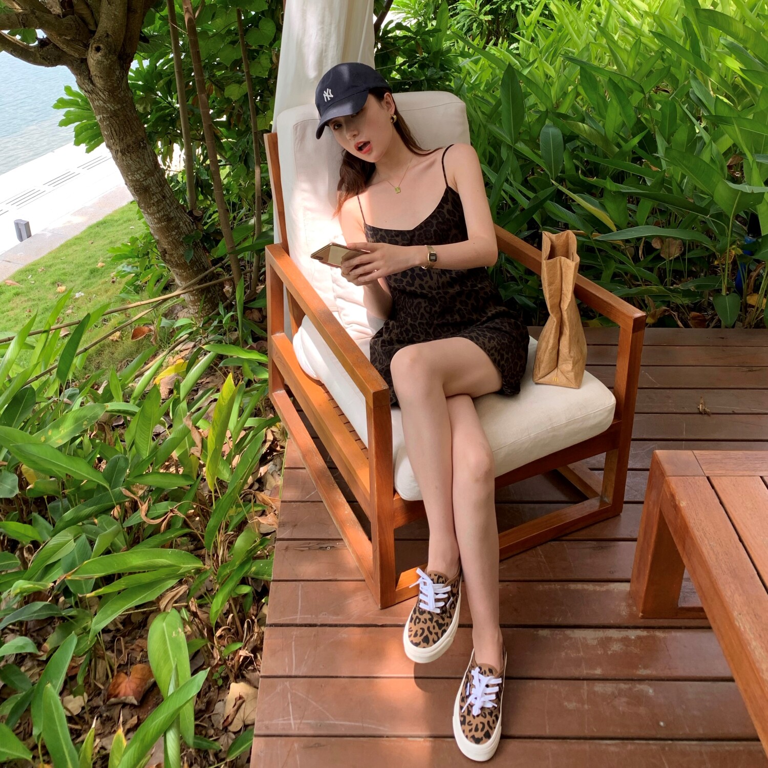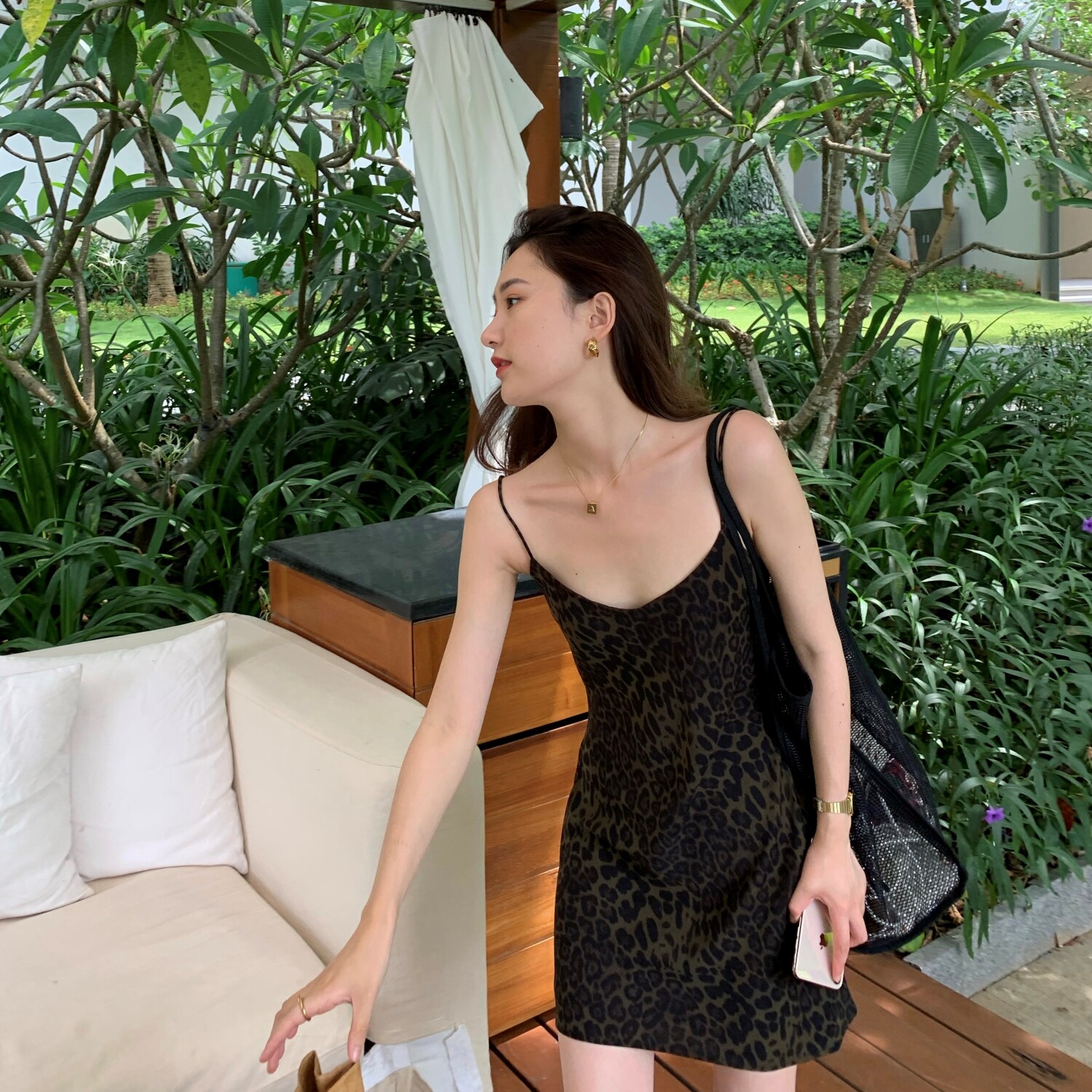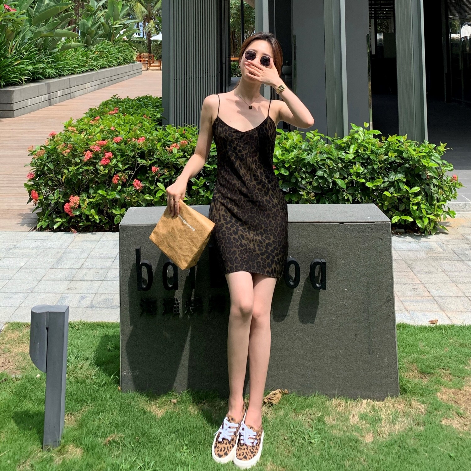 吊带裙女夏2020新款 显瘦收腰气质复古豹纹连衣裙 可盐可甜性感修身