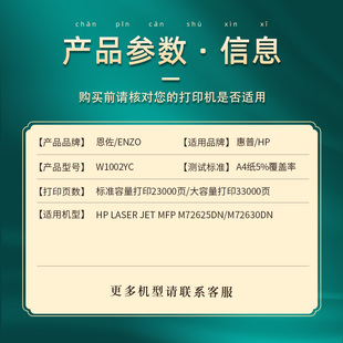 打印机墨盒 适用惠普W1002YC粉盒 M72630dn复印 LaserJetMFP 72630dn硒鼓碳粉 惠普72625粉盒M72625dn粉盒HP