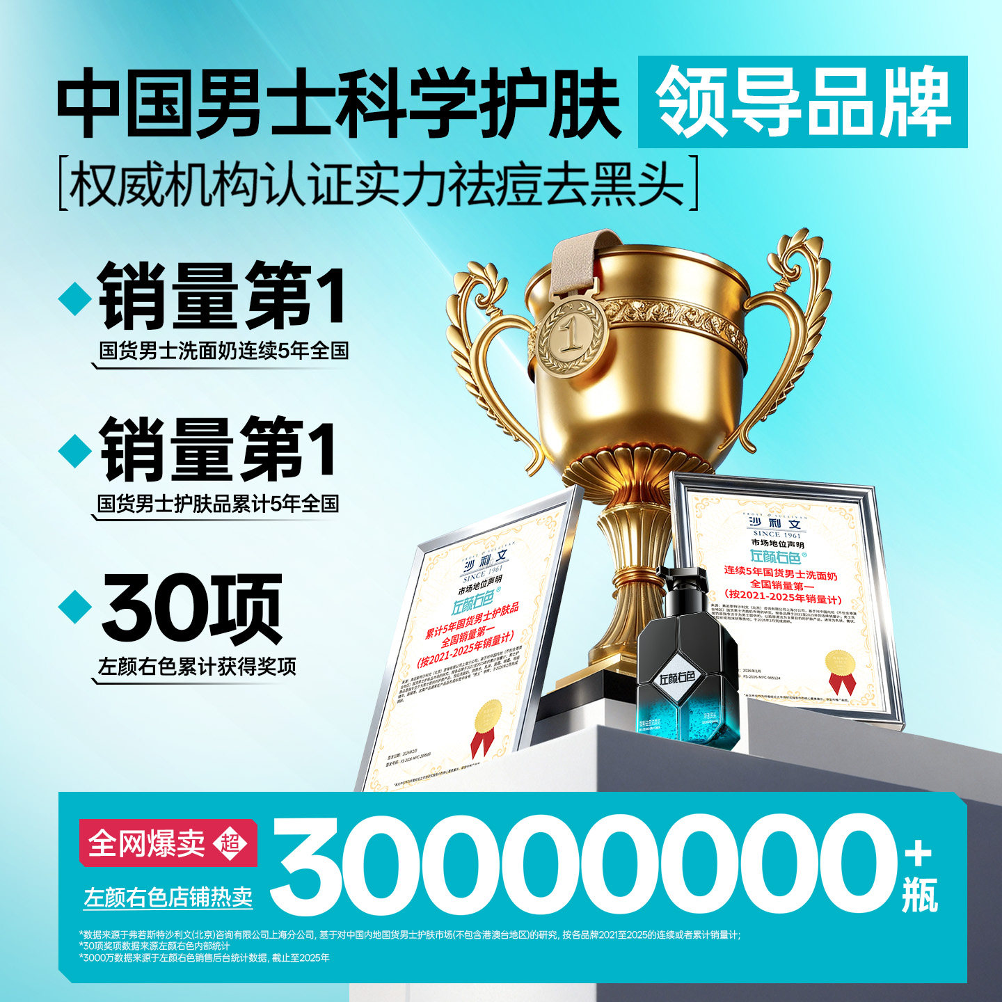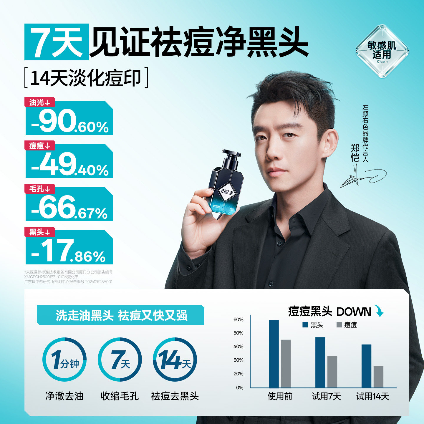 郑恺代言左颜右色男士 控油祛痘洗面奶微酸氨基酸洁面乳净黑头专用