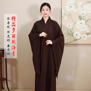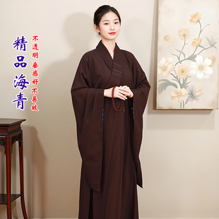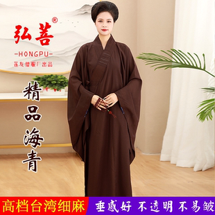 弘菩海青居士服女男禅修长褂台湾麻不透明春夏秋深咖啡色垂感海清