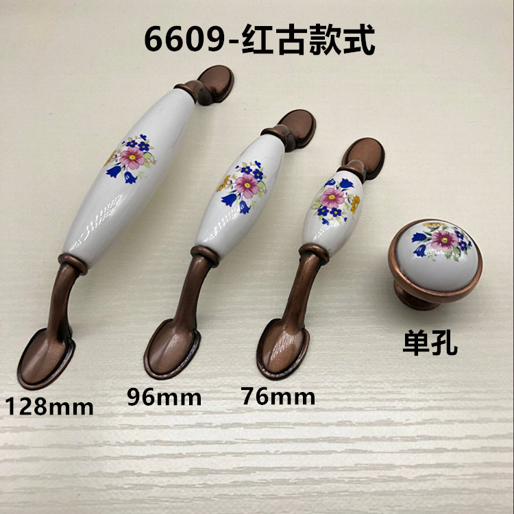 欧式 柜陶瓷拉手柜子门把手 衣柜门拉手田园五金抽屉拉手仿古橱柜鞋