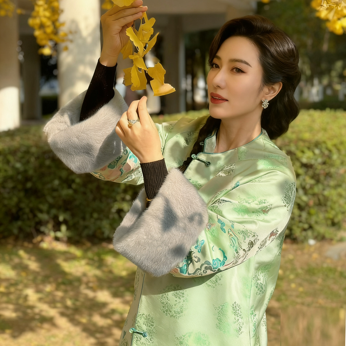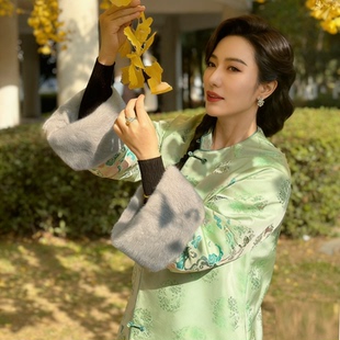 筒袖 套民族袖 头 口香云苏绣大衣真毛国风袖 进口真貂皮水貂毛袖