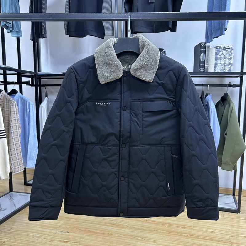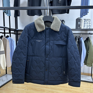 商务通勤可拆毛领条保暖有型修身 秋冬翻领轻薄棉服外套 棉服爸爸装