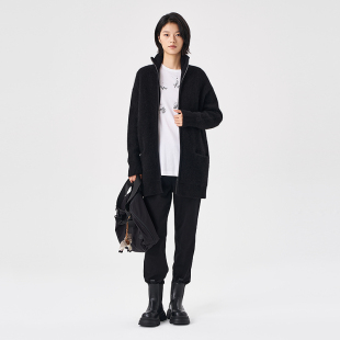 商场同款 宽松黑色毛织上衣慵懒针织开衫 2025冬季 女装 新品 OTT