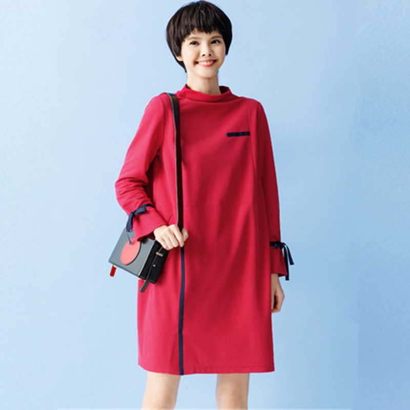 宽松大码 新款 简约休闲流行中长裙子 2021冬装 红色内搭连衣裙女长袖