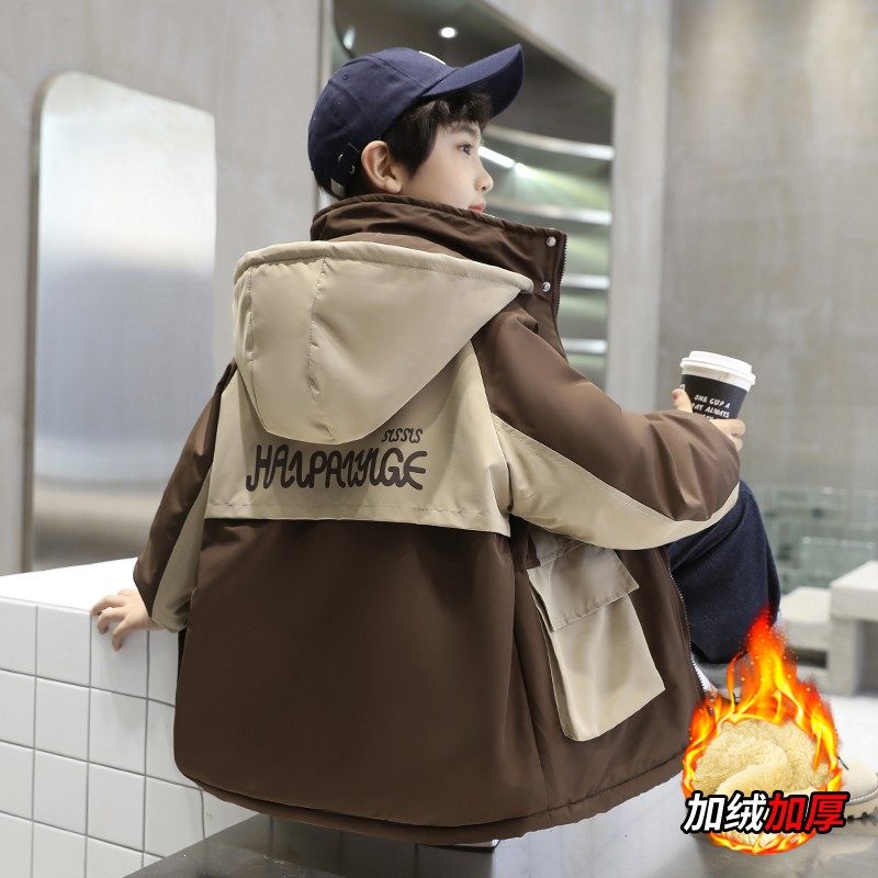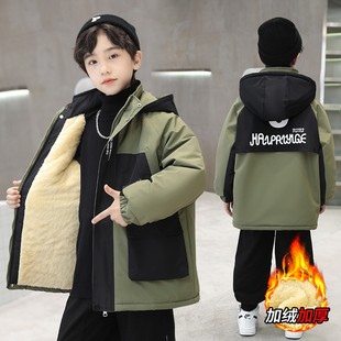 男童秋冬加绒外套儿童装 棉服帅炸 冲锋衣加厚风衣派克服中大童冬季