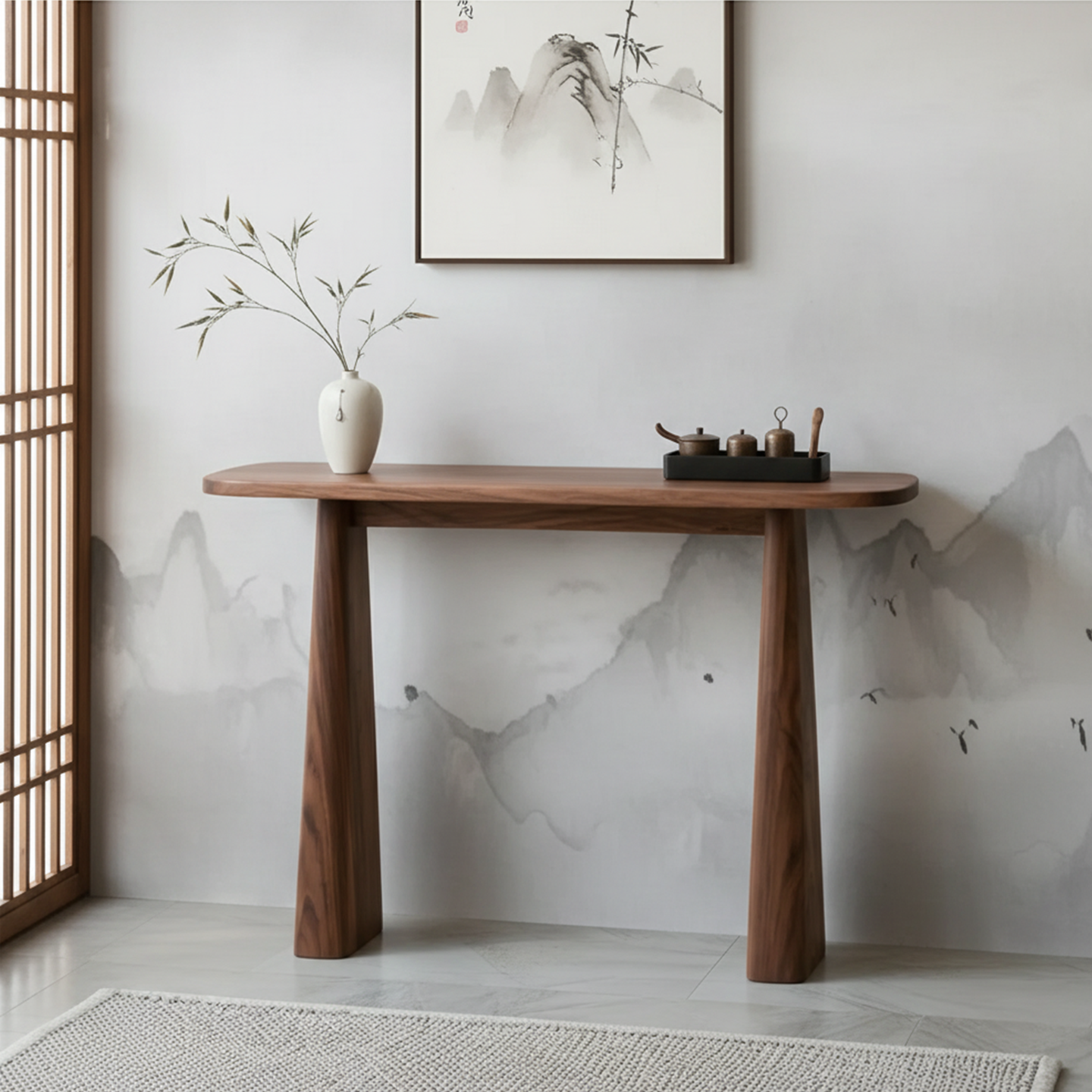 新中式 实木入户玄关桌客厅玄关柜禅意供桌靠墙条案端景台长条窄桌