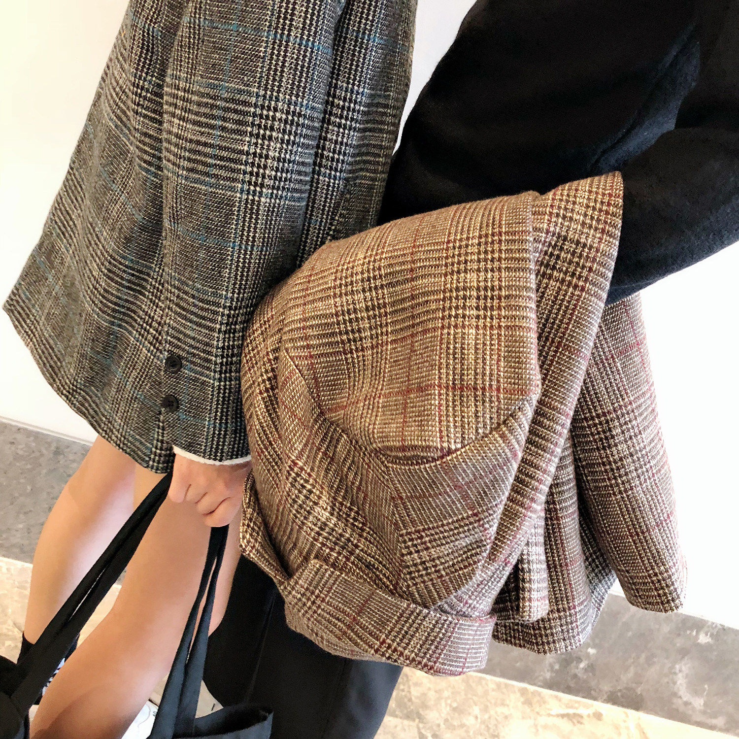 夹克外套 西装 ICE UP高端混纺羊毛两穿宽松垫肩vibe黑色休闲短款