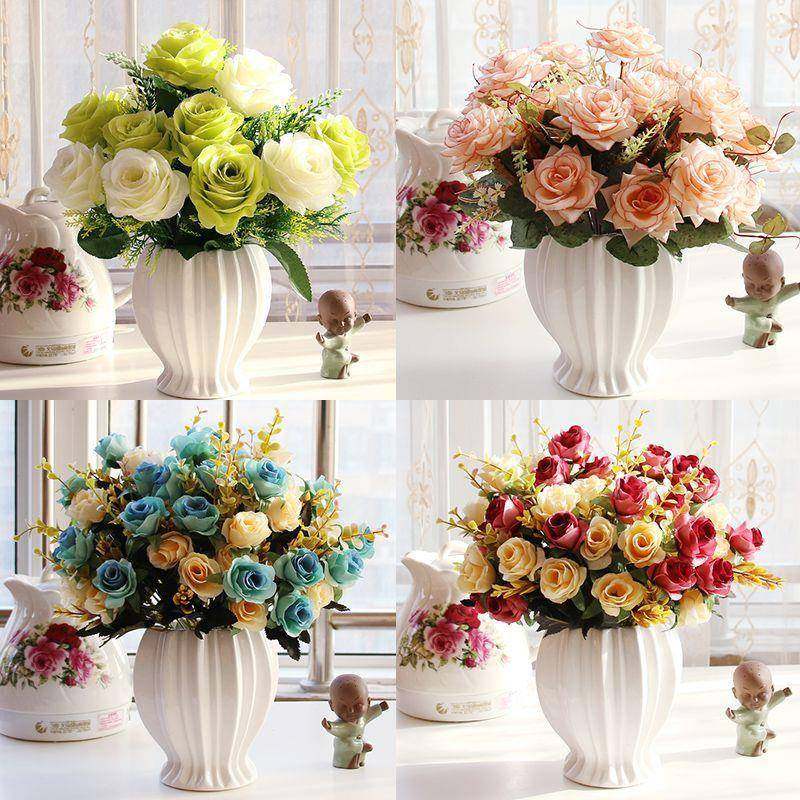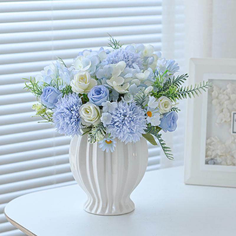 碎冰蓝玫瑰仿真花束绢花栽套装 花摆查看详情客厅餐桌塑件料假干花