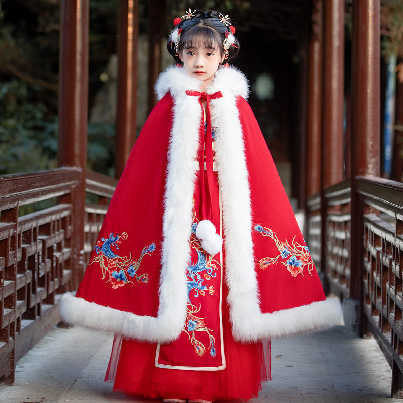 九御华裳原创汉洋折衷明制交领琵琶袖 加绒斗篷马面罩裙洛丽塔秋冬