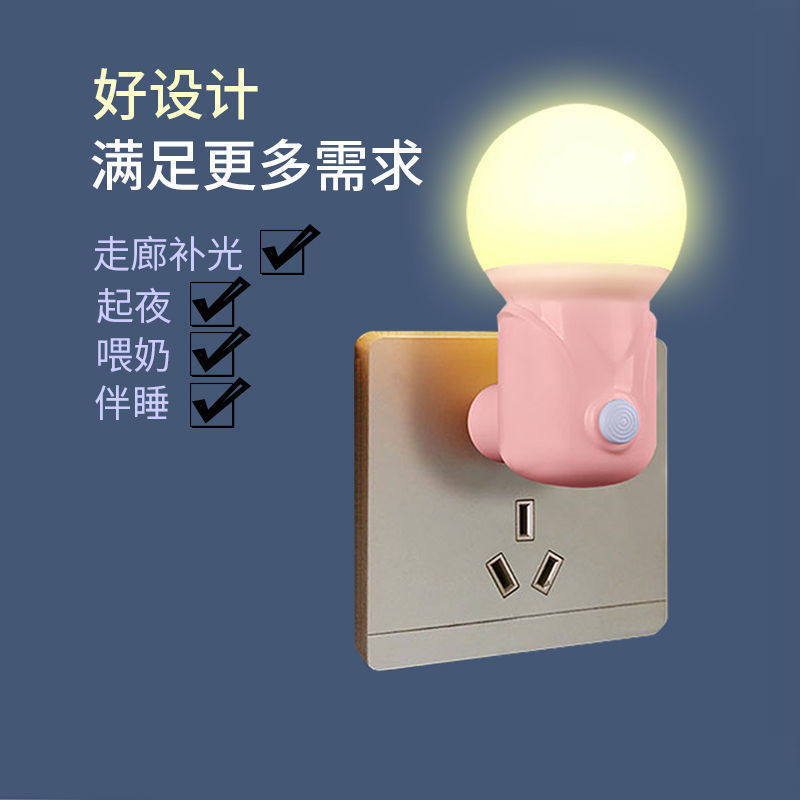 小夜灯婴儿起夜喂奶护眼节能插电led灯儿童卧室睡眠床头灯可调光