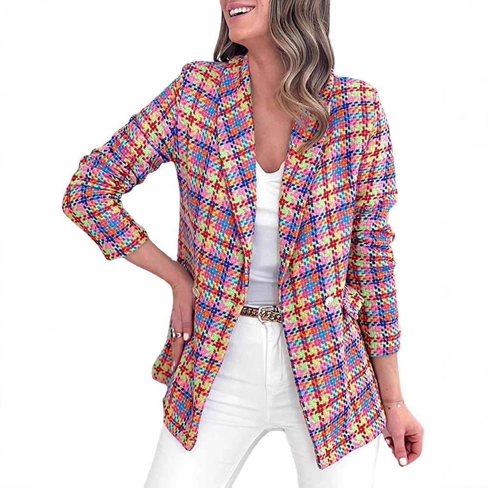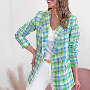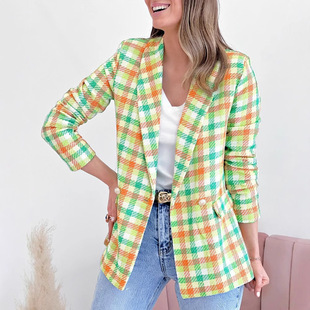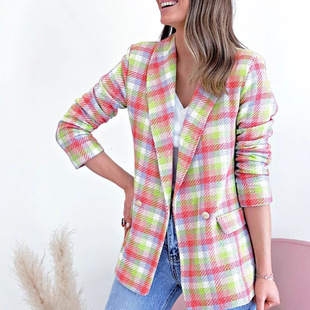 plaid lapel jacket spring female suit Autumn fit lady slim