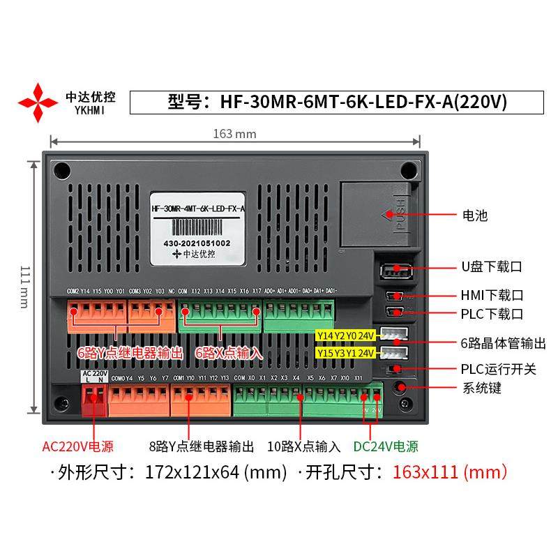 30MR 24V 供电220V LED 6MT 中达优控文本PLC一体机