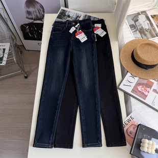 腿精 保暖紧身弹力九分小脚裤 加绒铅笔牛仔裤 女冬季 靴裤 行走间