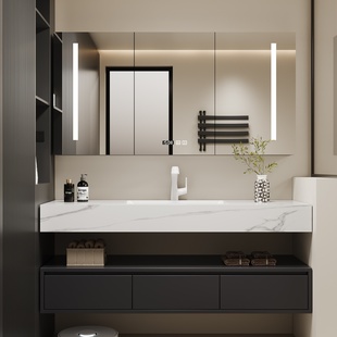 轻奢酒店风浴室柜组合岩板热弯一体盆智能卫生间洗漱台洗脸洗手盆