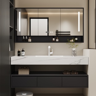 新款 浴室柜组合岩板无缝陶瓷一体盆洗漱台轻奢卫生间厕所洗手脸池
