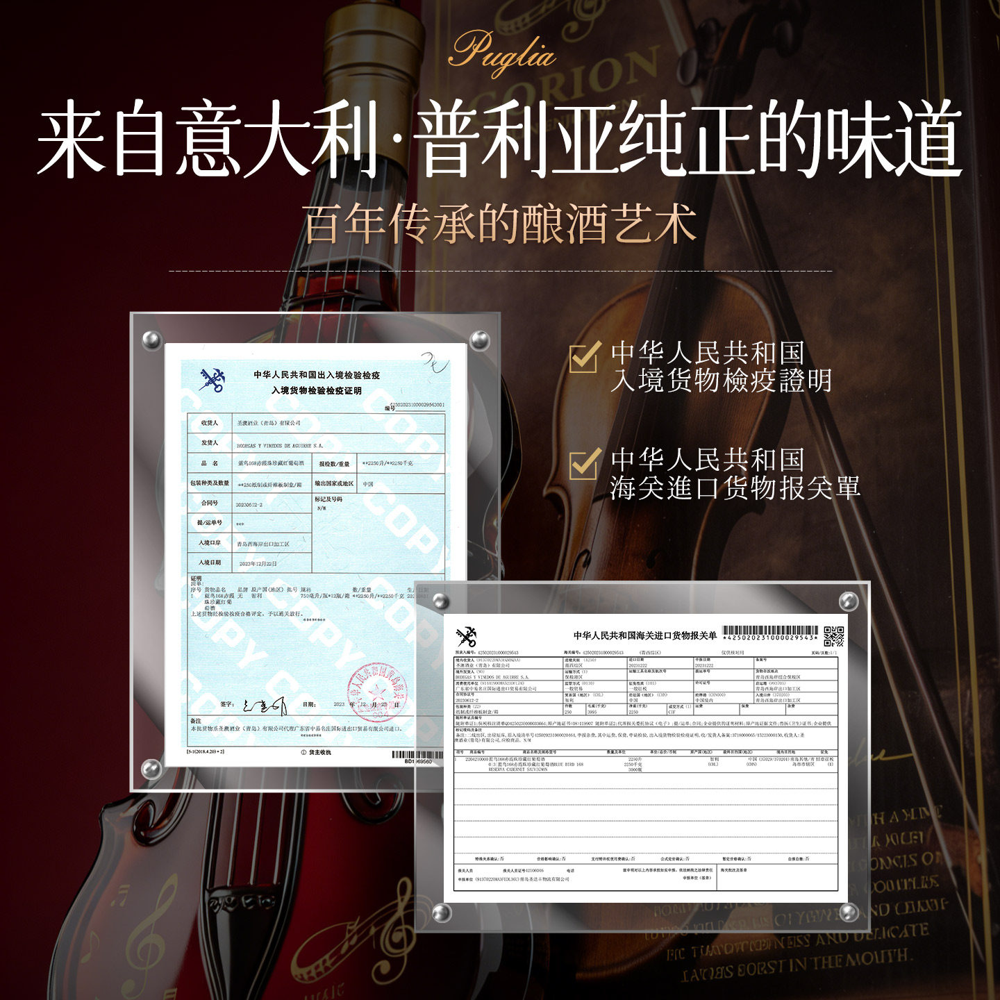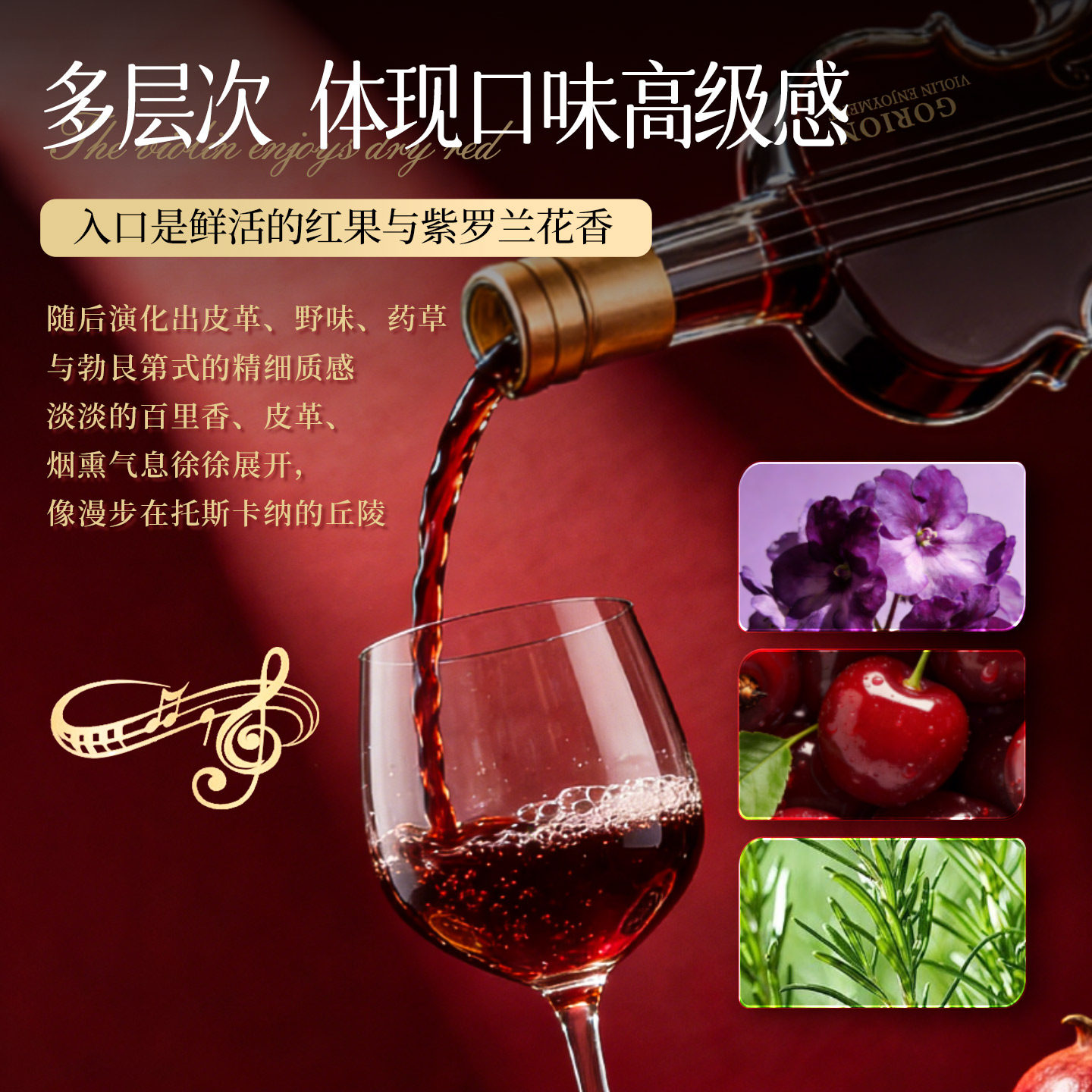 意大利进口红酒小提琴艺术干红葡萄酒14.5度单支礼盒送礼摆放酒柜