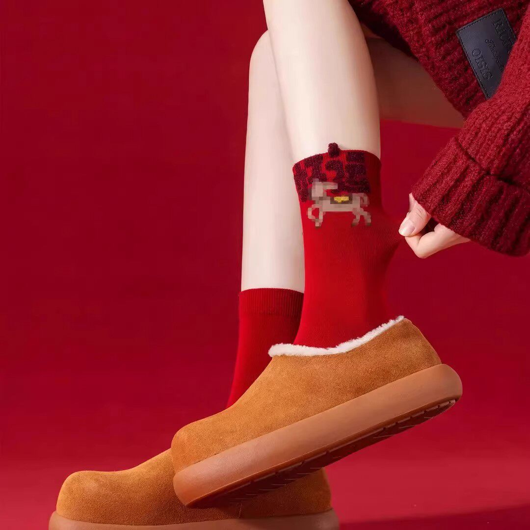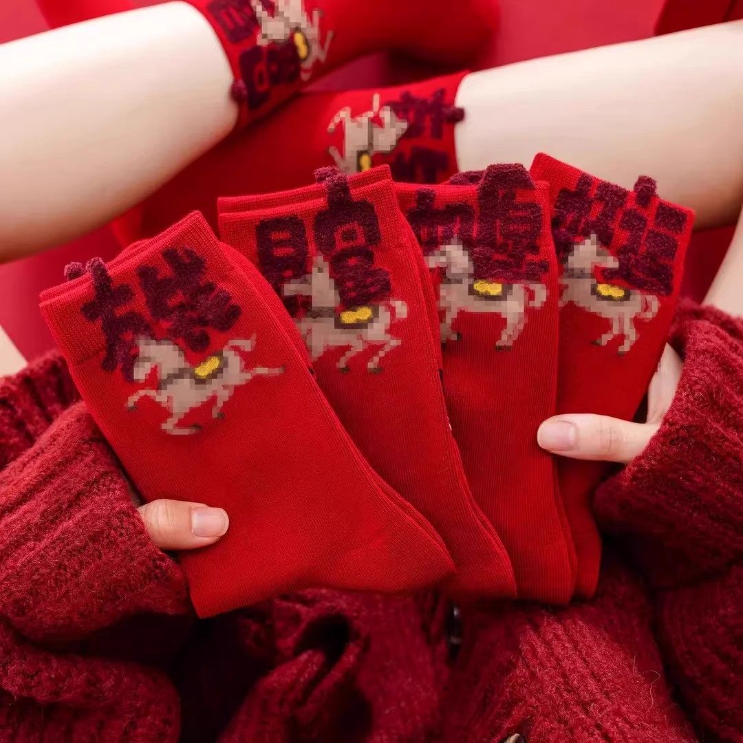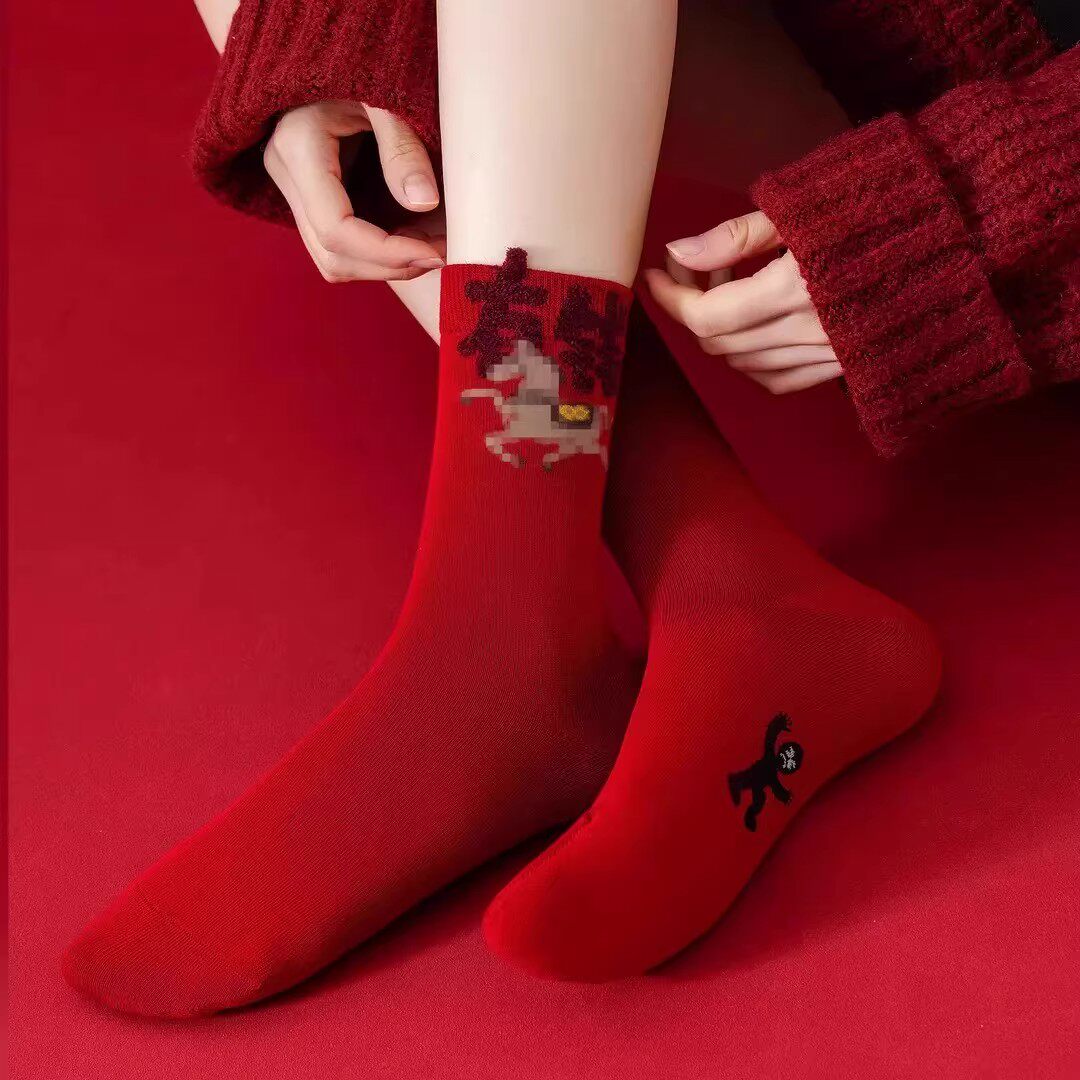 中筒不掉色本命年JL 新年红棉袜男女同款 下单立减50