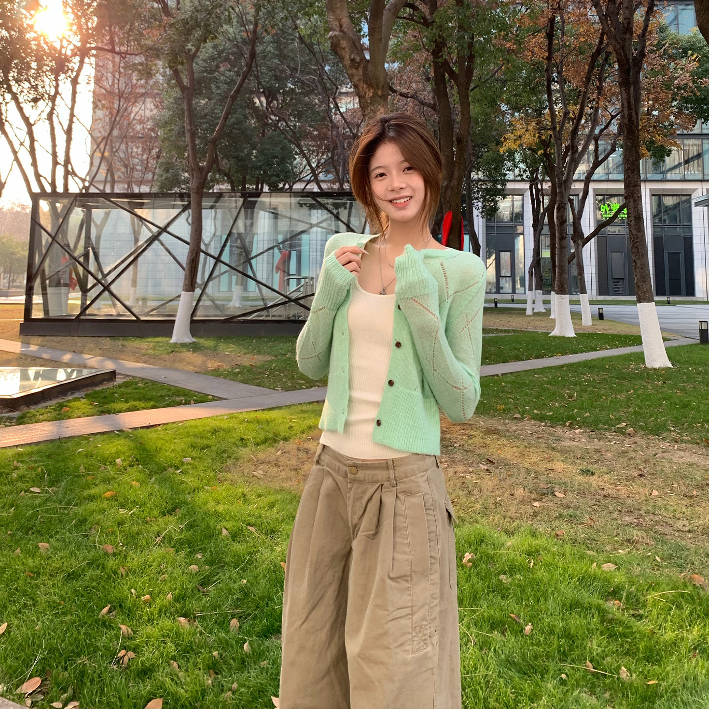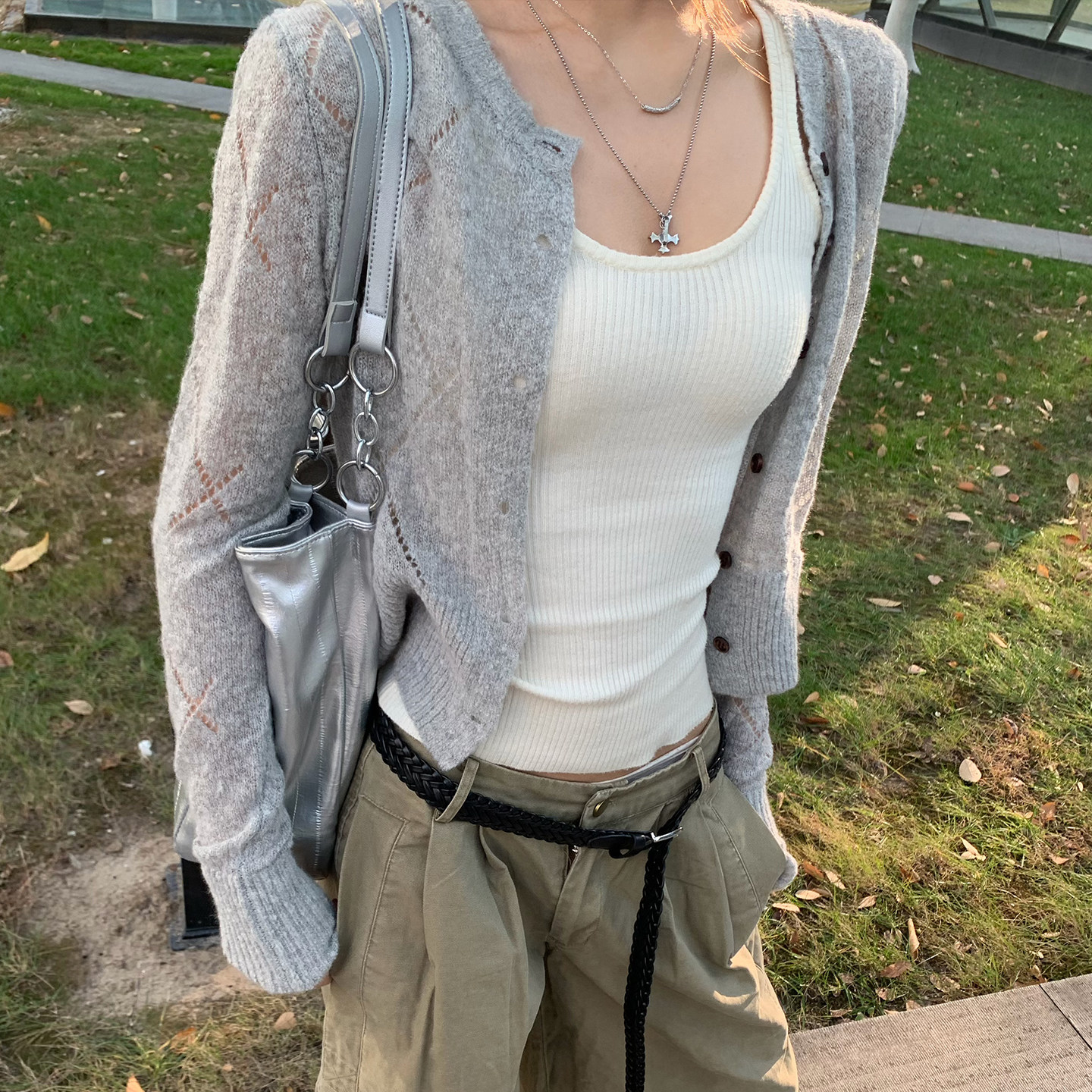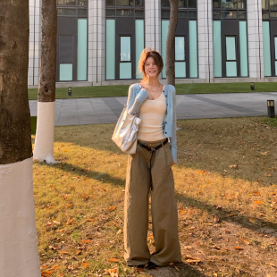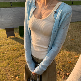 宽松显瘦百搭毛衣外套 吊带两件套女新款 E7Q8 韩系慵懒风针织开衫