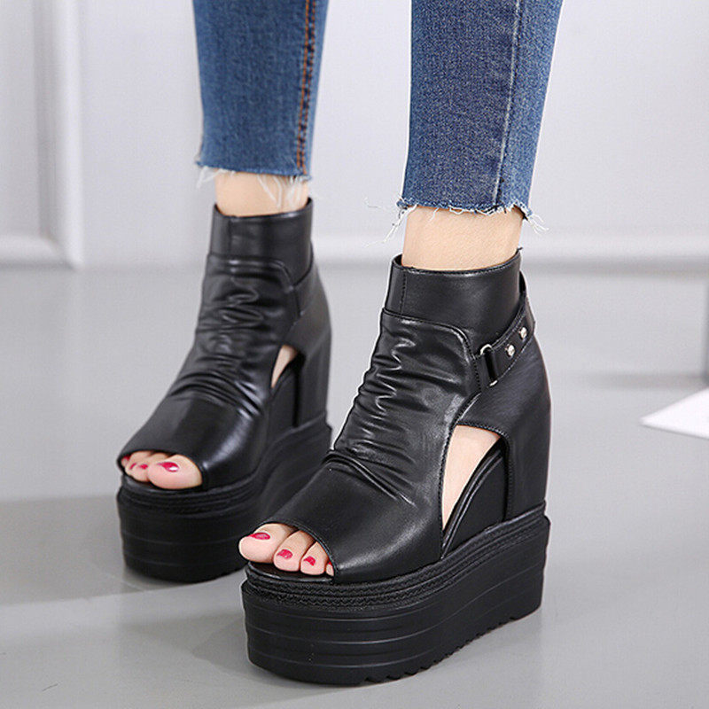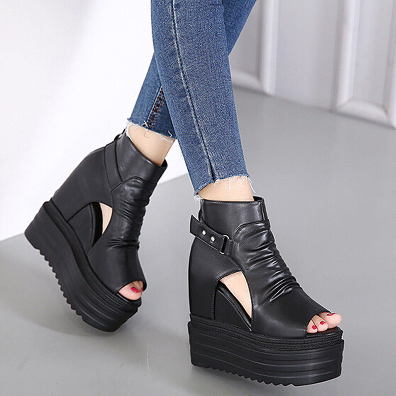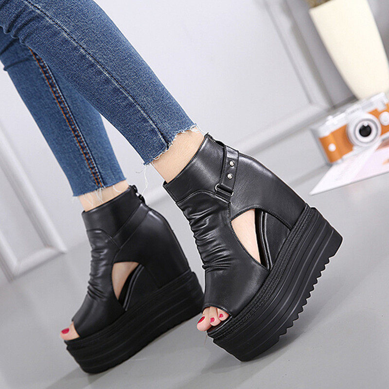 女超高跟防滑厚底坡跟镂空松糕鞋 显瘦内增高鱼嘴凉鞋 新款 2020夏季