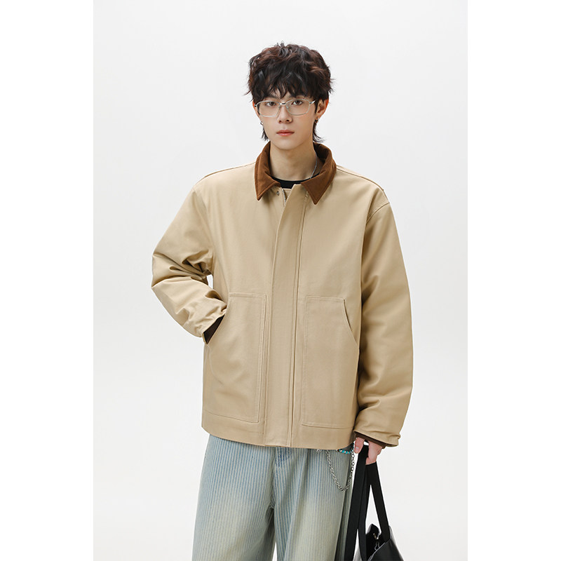 夹克潮 阿美咔叽工装 美式 复古水洗蓝色加绒牛仔外套男2025秋冬新款