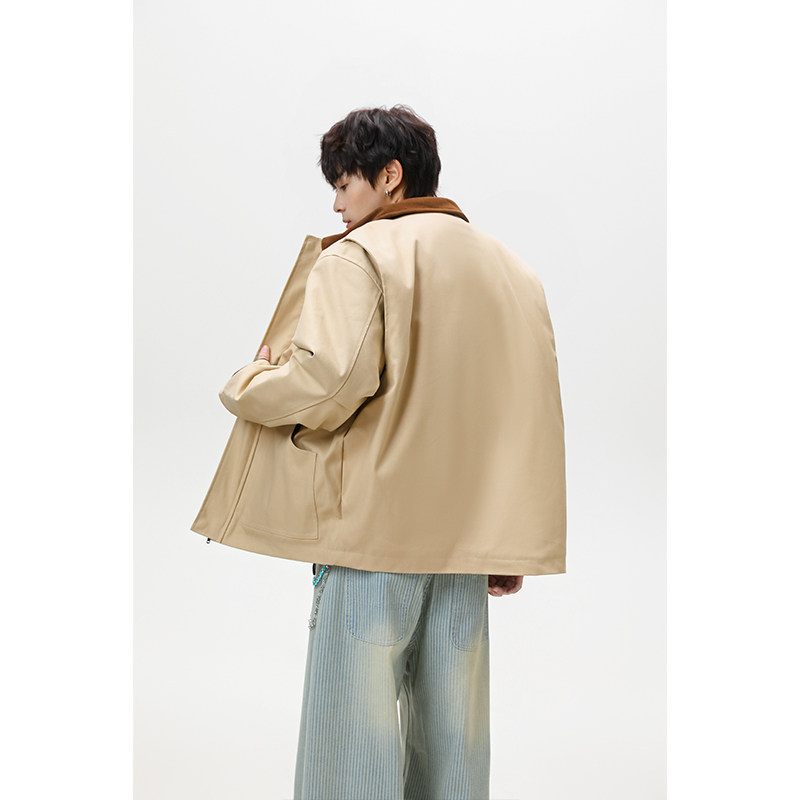 美式 复古设计感原色牛仔外套宽松百搭正肩口袋cleanfit夹克上衣男