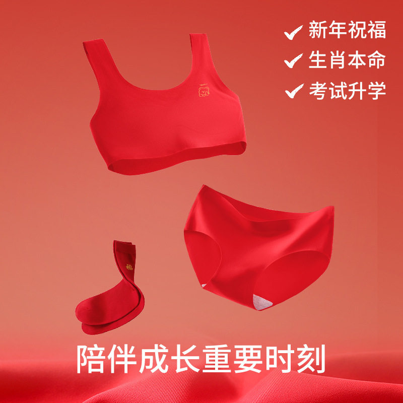 女童红色本命年内衣套装 2025马年衣服儿童少女发育期文胸背心12岁