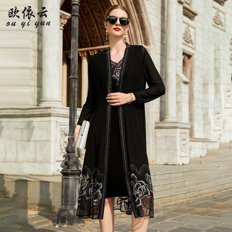 欧依云中老年妈妈春装 裙2025新 两件套连衣裙高贵洋气显瘦气质套装