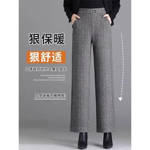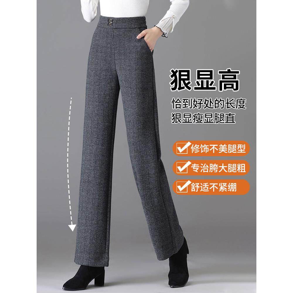 女士休闲显瘦毛呢裤 2025新款 子 女秋冬人字纹高腰直筒裤 羊绒阔腿裤