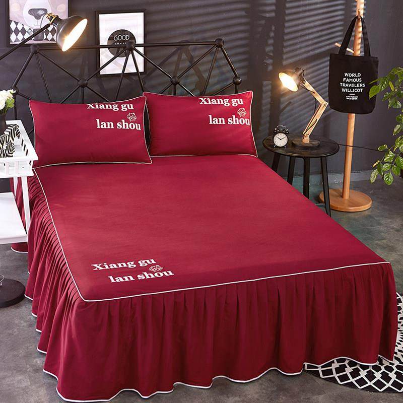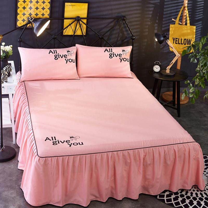 纯色床罩床裙式 单件席梦思保护套防滑床单荷叶边1.5m1.8米2.0床套