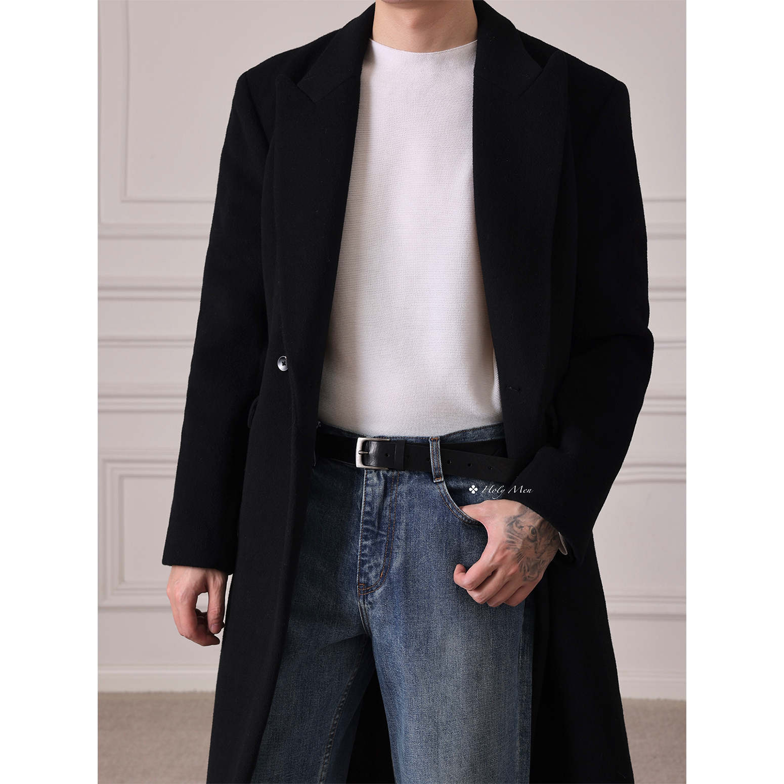 HolyMen 真皮腰带皮带男 意大利油蜡马皮褶皱肌理无压线一体式