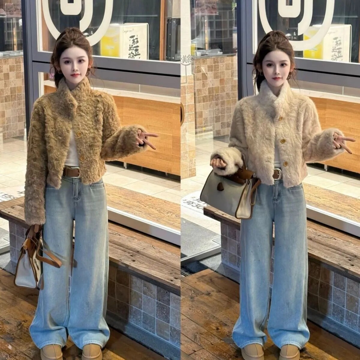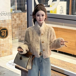 上衣 立领加厚皮草短款 高级感皮毛一体羊羔毛外套女小个子冬季 新款