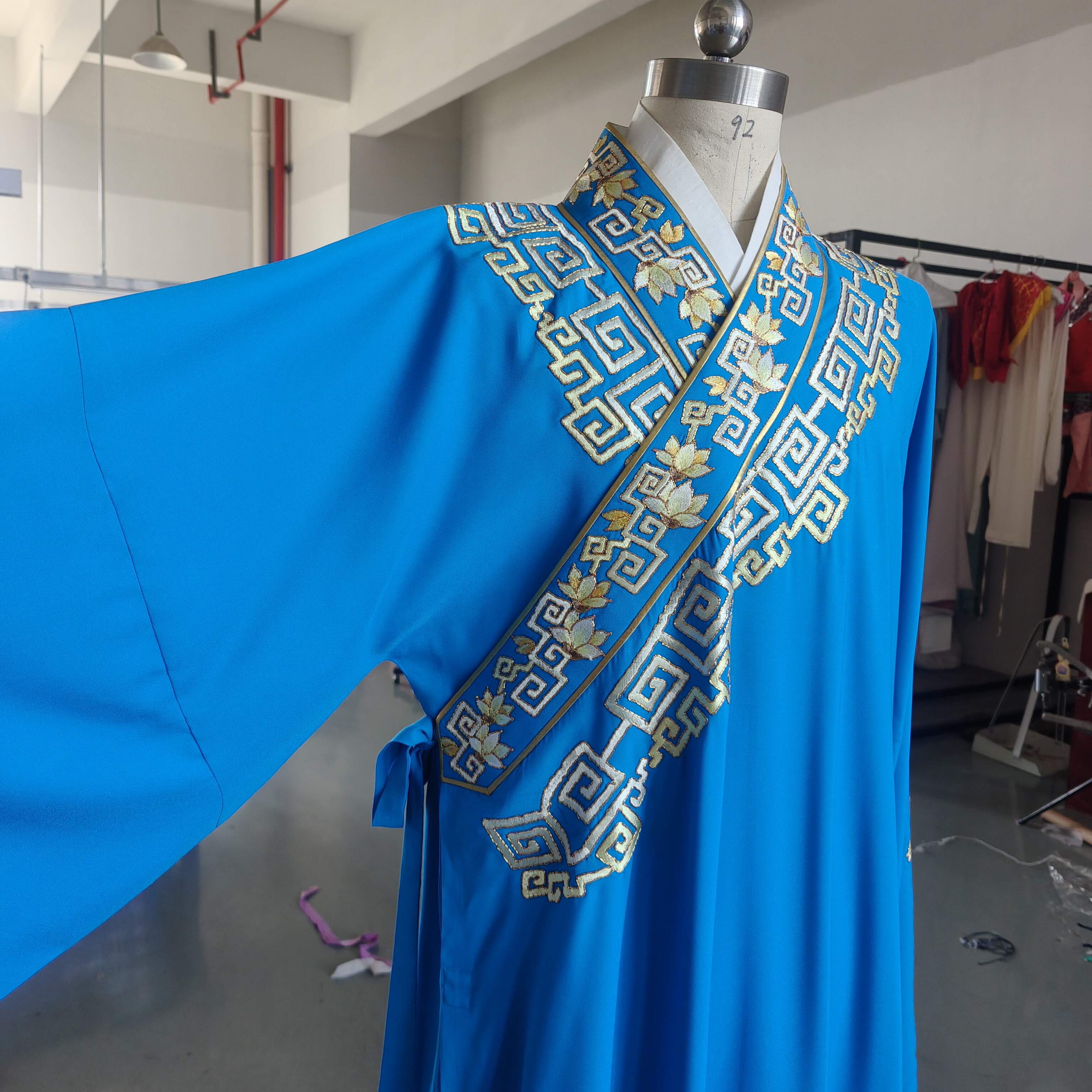 通用款 中式 仿真丝小生戏服蓝色舞台装 戏曲服装 风 刺绣长袖 现货新品