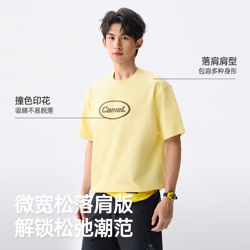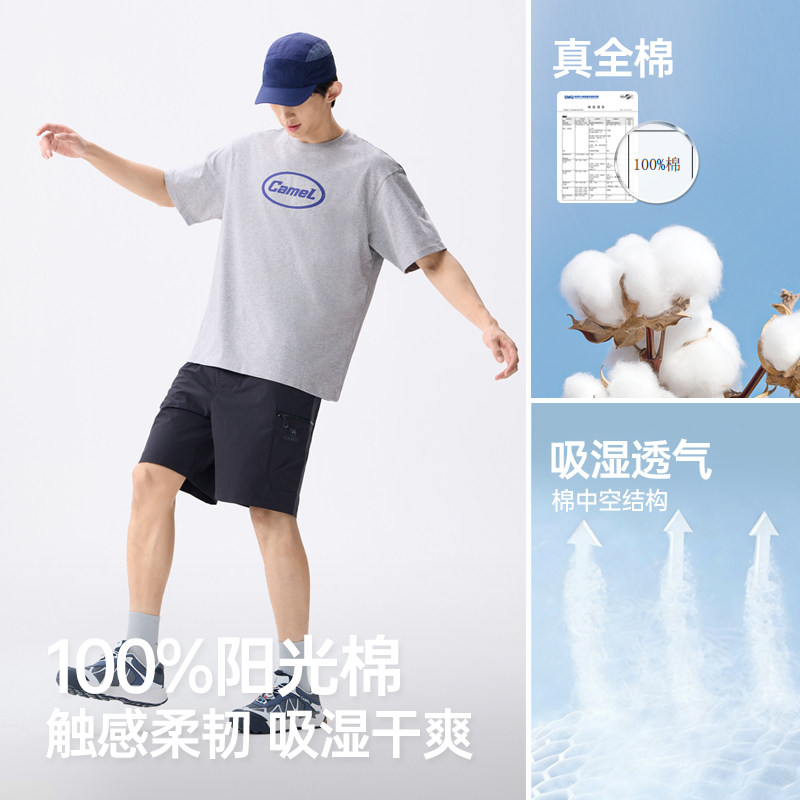 260g潮牌宽松白色上衣100%纯棉美式 26新款 重磅t恤 男夏季 骆驼短袖