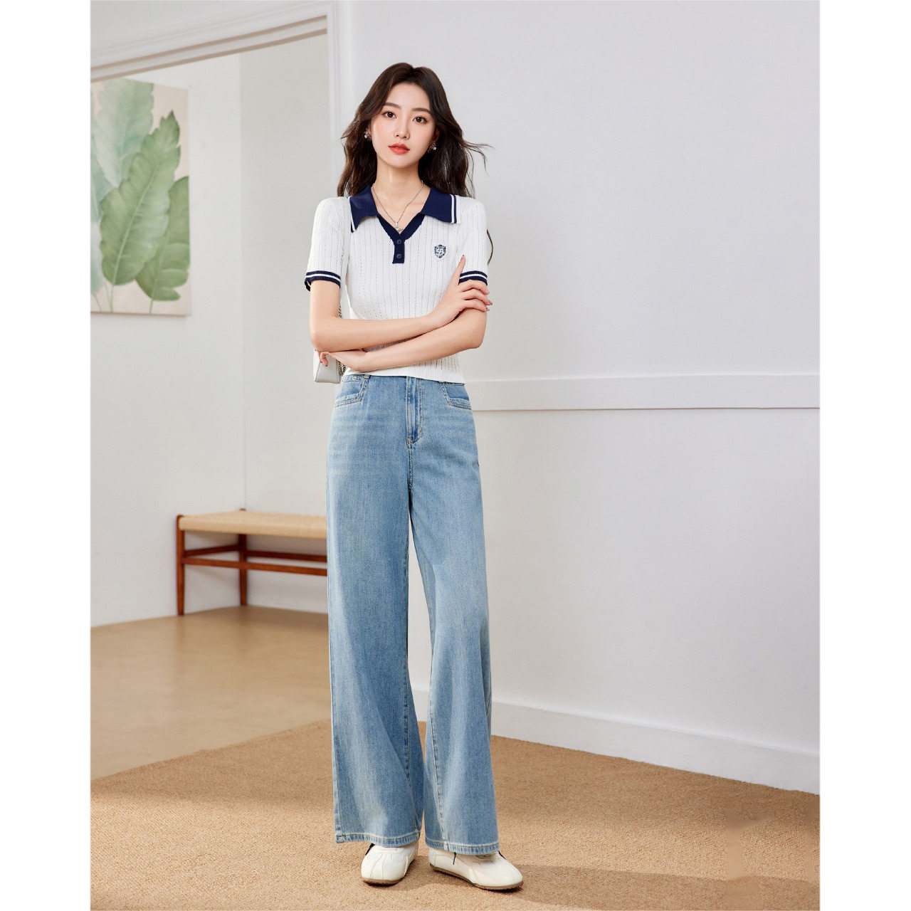 简约休闲通勤气质百搭牛仔阔腿裤 IEF 韩版 子2026春夏新款 爱依服裤