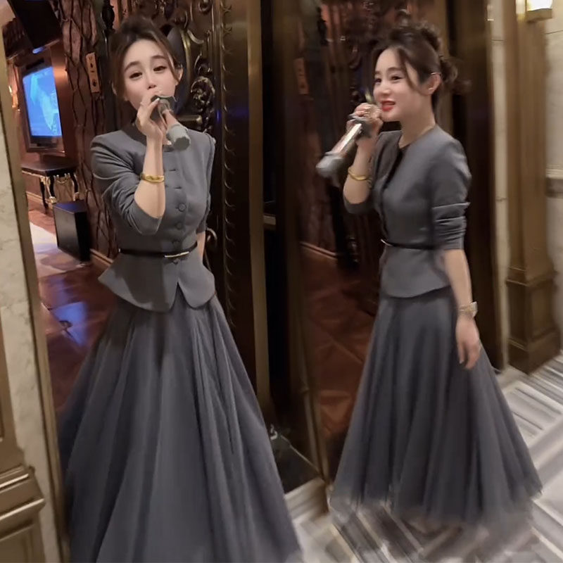 气质优雅显瘦腰带西装 时尚 新款 女2026春季 外套网纱半裙两件套 套装