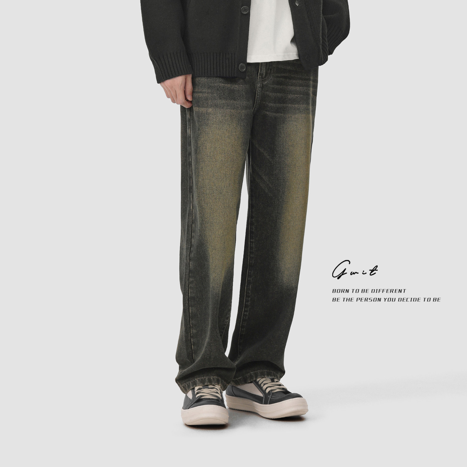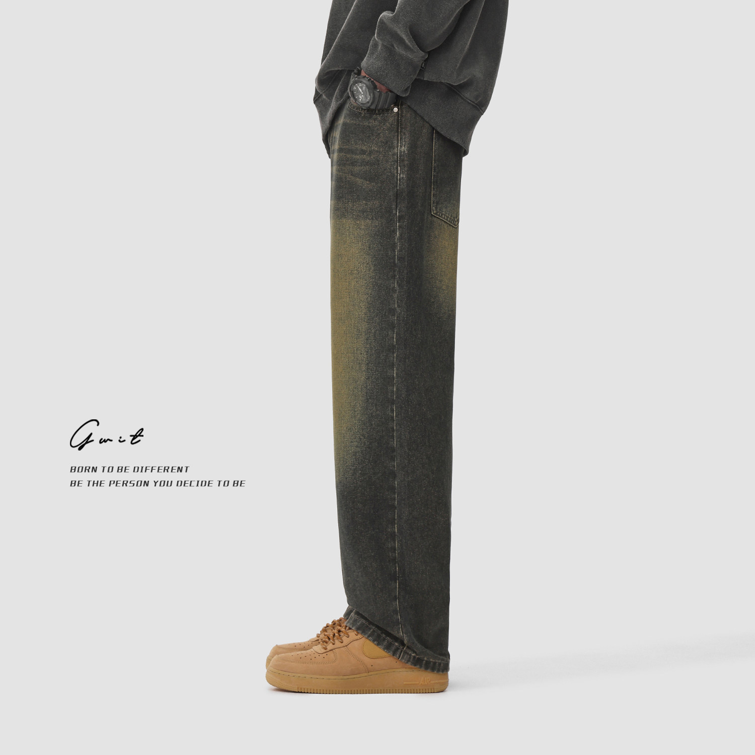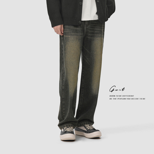 潮牌牛仔裤 高街复古黄泥染重磅水洗做旧春秋休闲长裤 男 美式 GWIT
