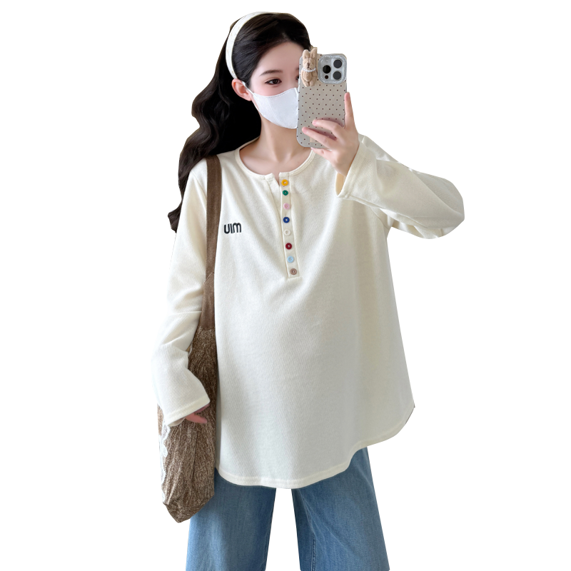 孕妇装 宽松长袖 卫衣秋季 休闲V领时尚 T恤上衣女200斤 2025韩版 大码