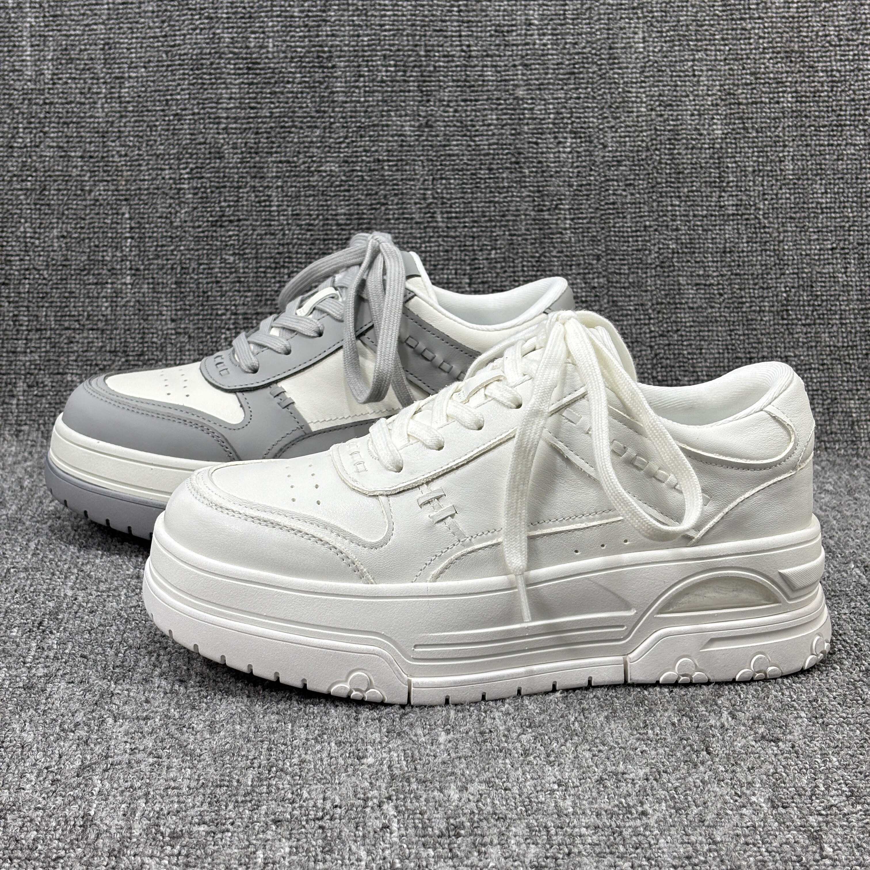 欧货编织厚底松糕底小白鞋 增高轻便真皮板鞋 女 新款 欧洲站2026春季
