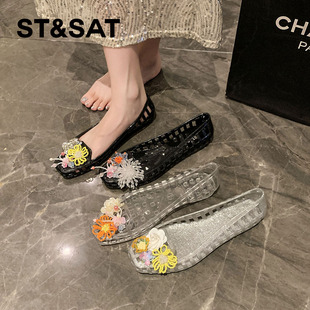 花朵罗马凉鞋 星期六韩版 一脚蹬单鞋 女春夏新款 软底果冻水晶鞋