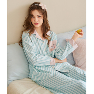 惊喜新势力周 套装 芬腾女士睡衣春秋季 长袖 家居服 纯棉翻领开衫