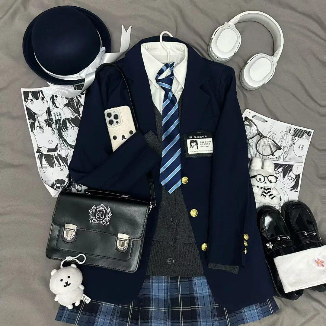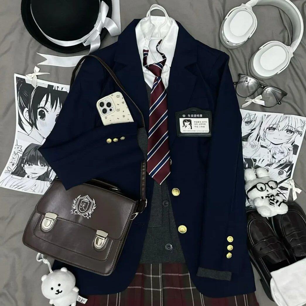 西服上衣外套女生秋冬保暖校供感叠穿套装 日系JK制服正版 原创西装