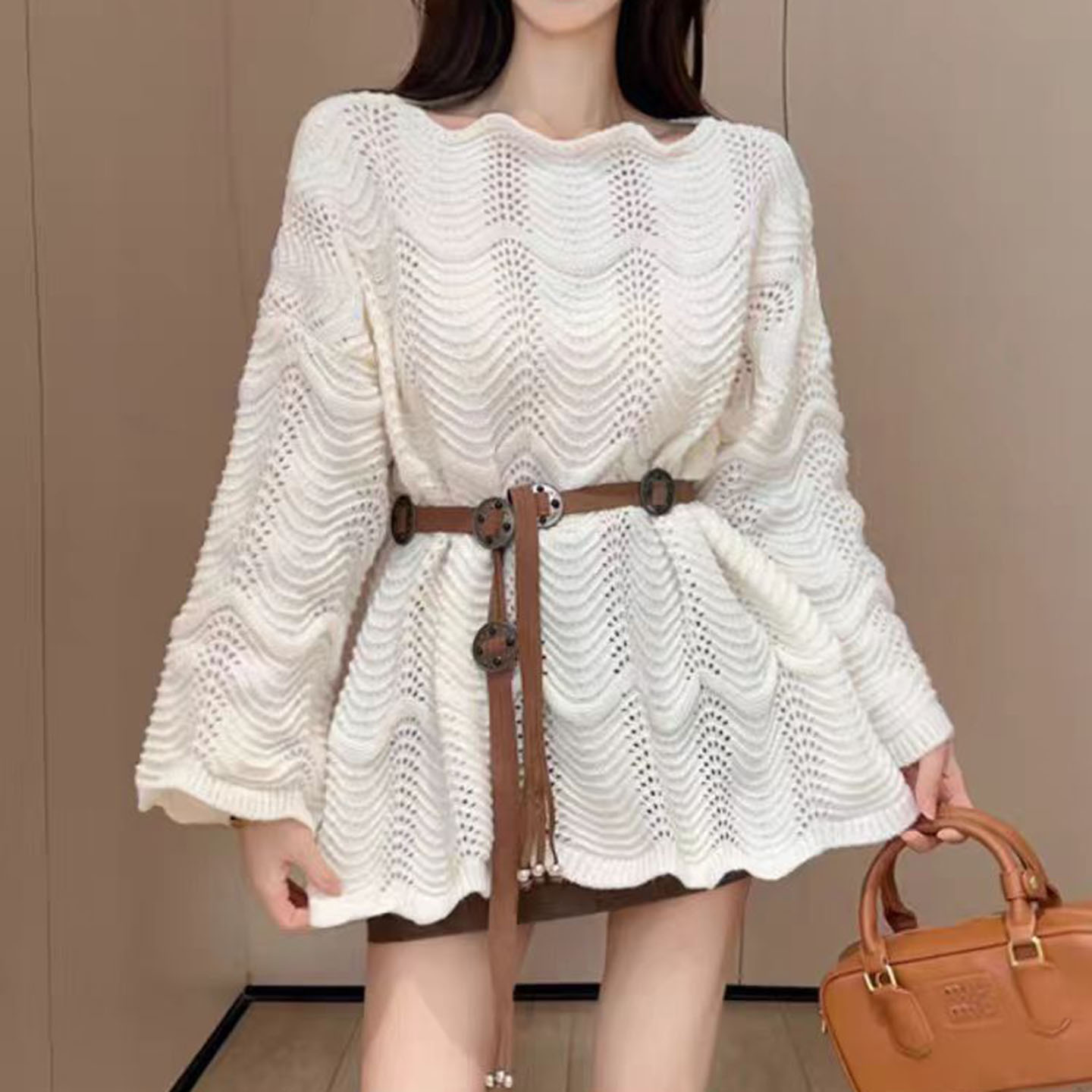 针织衫 洋气2025年秋冬毛衣长袖 宽松 女新款 软糯休闲花边圆领打底衫