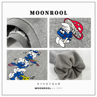 2025冬季 男大童趣味潮酷印花加绒卫衣圆领宽松加厚上衣百搭亲子装